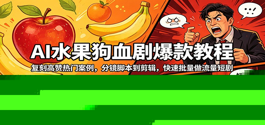 本课程聚焦爆款水果拟人狗血短剧赛道,以单条二十余万高赞案例为范本,提供全套保姆级复刻教程。全程简化制作流程,从爆款案例解析、分镜脚本撰写、参考图生成,到 AI 批量制作视频、后期剪辑优化,一步步拆解落地操作。同时附带实用工具获取方法,降低创作门槛,无需专业剪辑与绘画基础,五分钟即可上手制作同类流量内容。短剧赛道竞争小、传播性强,极易撬动平台推荐流量,适合自媒体新手快速起号、批量量产内容,轻松实现短视频流量变现。